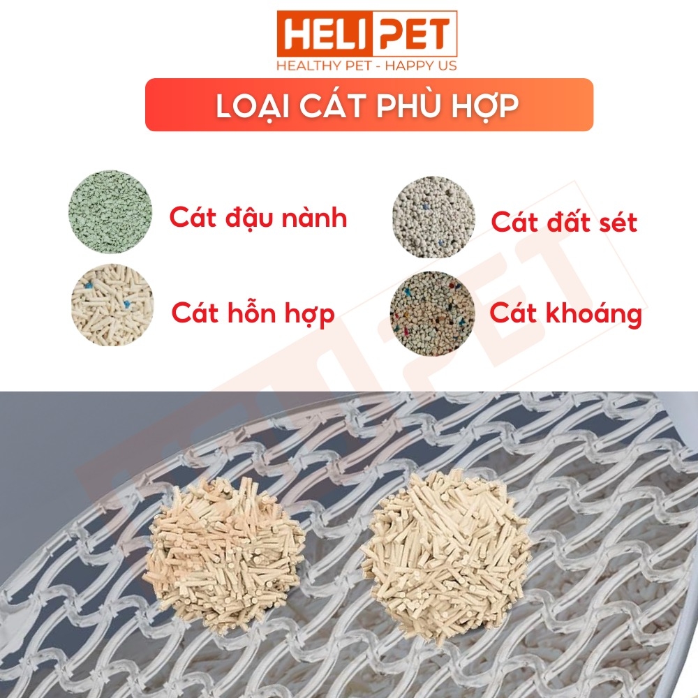 PETREE x HELIPET là dòng máy dọn vệ sinh mèo tương thích với các loại cát mèo như: cát đất sét, cát đậu nành hạt nhuyễn, cát khoáng, cát hỗn hợp.