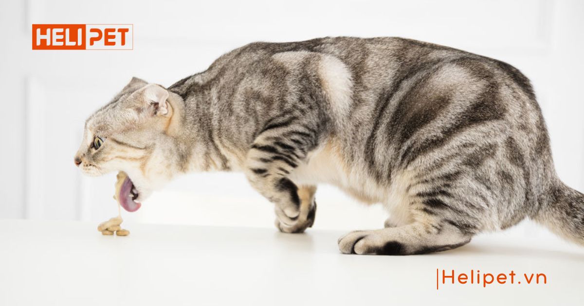 Khi nuốt phải đồ lại, mèo sẽ có biểu hiện nôn mửa để đẩy đồ vật ra