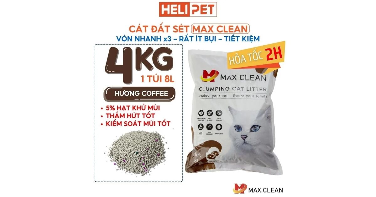 Cát đất sét Bentonite Max Clean là dòng cát truyền thống được cải tiến với cấu trúc hạt siêu mịn và mùi cà phê tự nhiên giúp át mùi hôi hiệu quả. Cát có khả năng vón nhanh – hút ẩm mạnh – khử mùi bền, đồng thời tạo cảm giác dễ chịu cho cả Boss lẫn người dùng. Ưu điểm của loại cát này là giá thành hợp lý, dễ tìm mua, phù hợp hầu hết các loại khay. Mặc dù không phải dòng sinh học, nhưng nếu được thay định kỳ và vệ sinh đúng cách, Bentonite Max Clean vẫn là lựa chọn ổn định, tiết kiệm và khử mùi tốt cho Boss nhà bạn.
