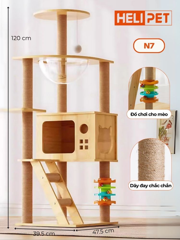 1. Thiết kế – Chất liệu – Tải trọng của nhà cây cho mèo HELIPET N7