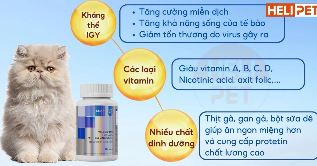 | Vitamin tổng hợp cho mèo DR.VET có kháng thể IGY |