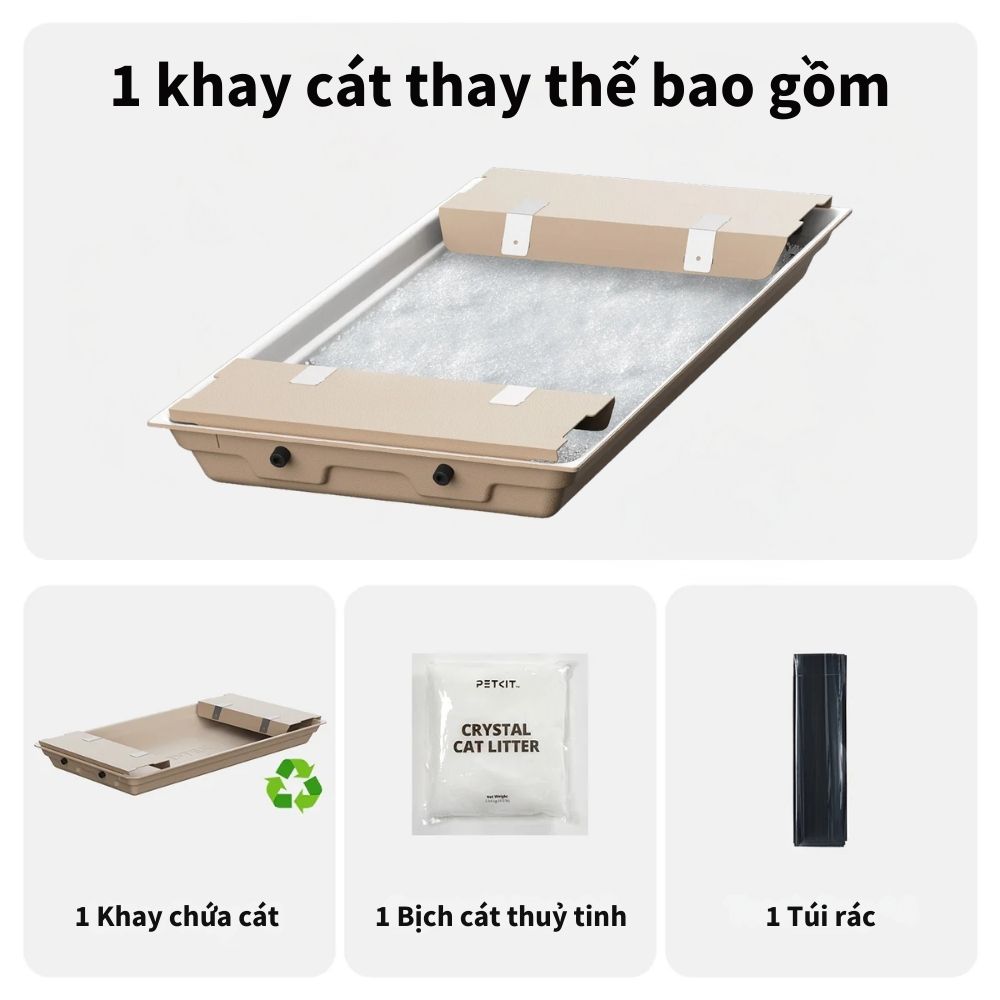 + 1 Khay MVS Crystal: 1 khay giấy + 1 bịch cát thủy tinh Petkit Crystal + 1 túi rác