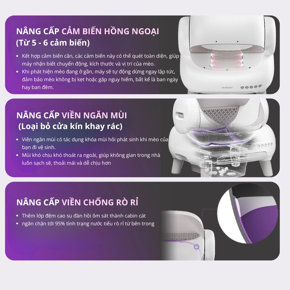 Những nâng cấp này mang lại cho Neakasa M1 Plus sự an toàn cho mèo khi sử dụng, khả năng kiểm soát mùi tối ưu và không gian sạch sẽ hơn, phù hợp với các gia đình nuôi nhiều mèo hoặc yêu cầu cao về tiện nghi và vệ sinh.