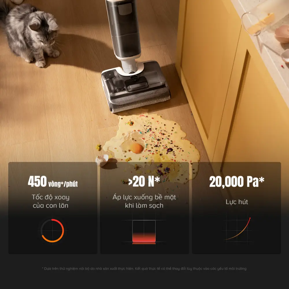 - Lực hút mạnh mẽ 20.000 Pa, phù hợp cho việc làm sạch chuyên sâu trên nhiều bề mặt