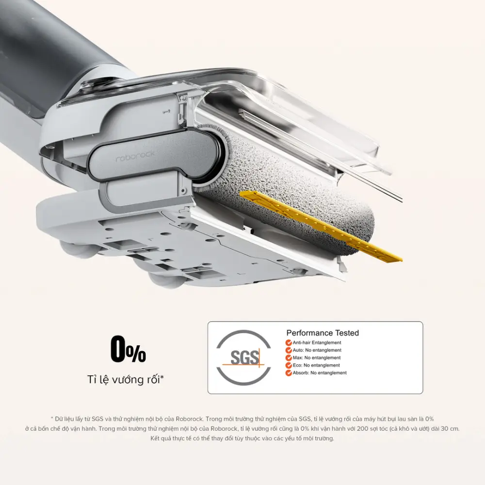 Roborock F25 RT sở hữu lực hút mạnh mẽ lên đến 20.000 Pa, tỷ lệ vướng rối 0% . Máy cũng được trang bị tính năng tự động giặt và sấy khô con lăn ở nhiệt độ cao 90°C.