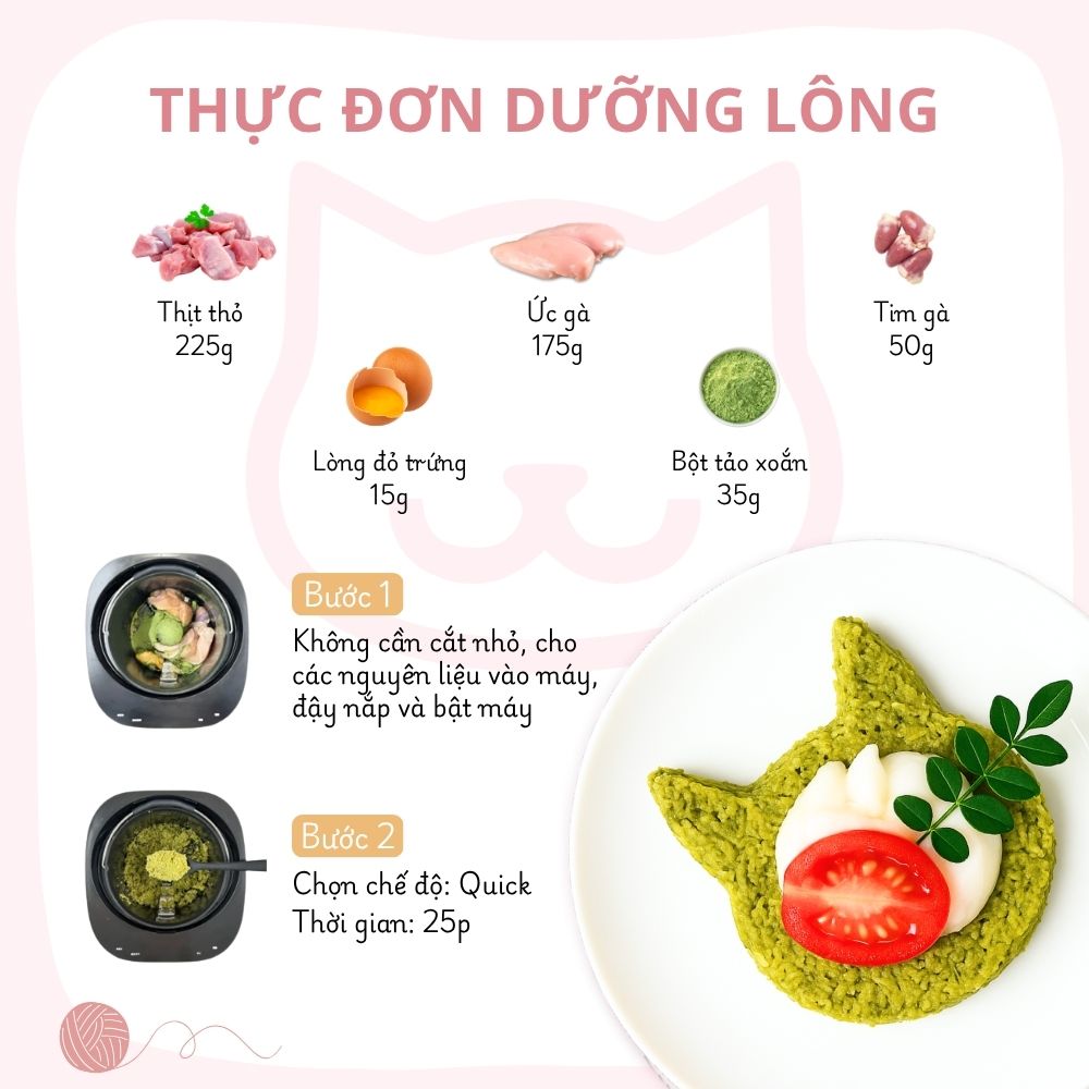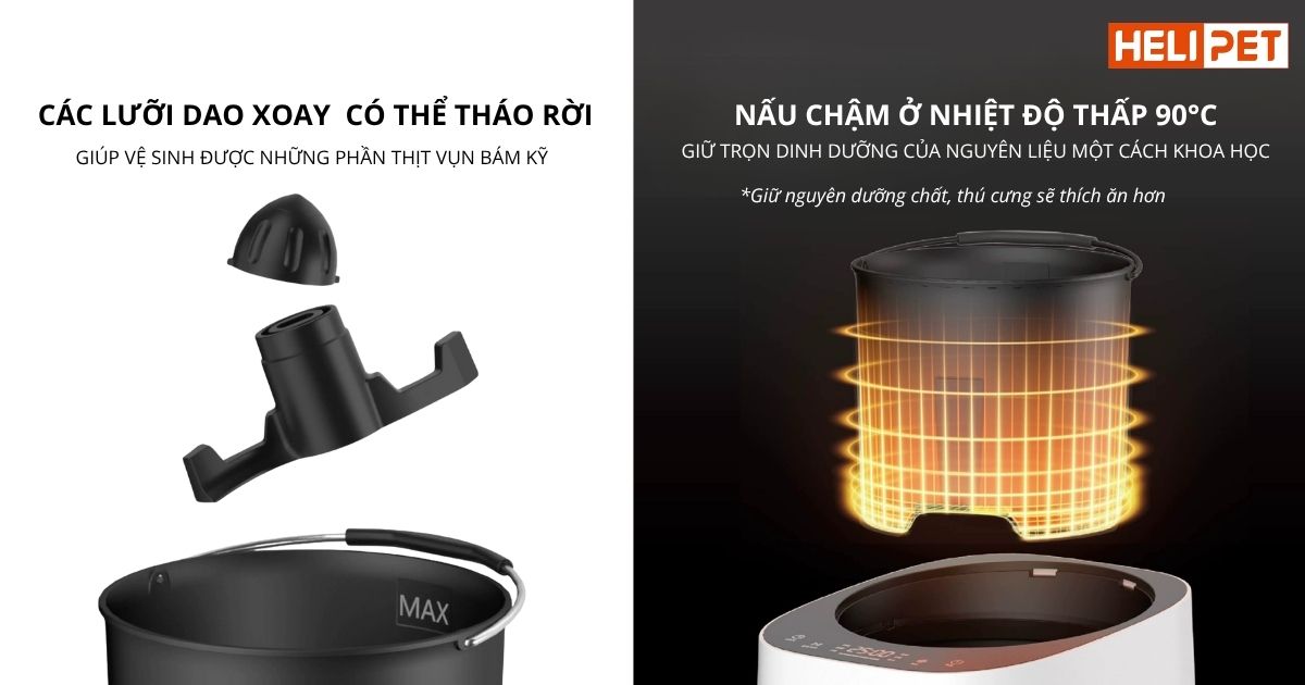 Chức năng: Chế biến thức ăn tươi, khô và ướt qua hấp, xay, trộn, sấy khô cho chó mèo