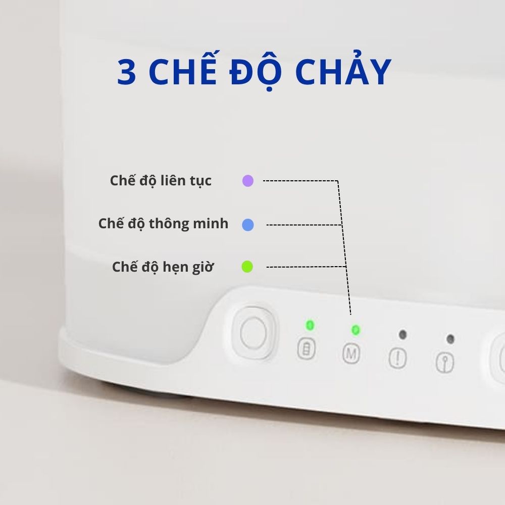 - Chế độ liên tục (Đèn Tím): Nước chảy liên tục không ngừng. (Lưu ý: Chế độ này chỉ khả dụng khi máy đang được cắm điện).