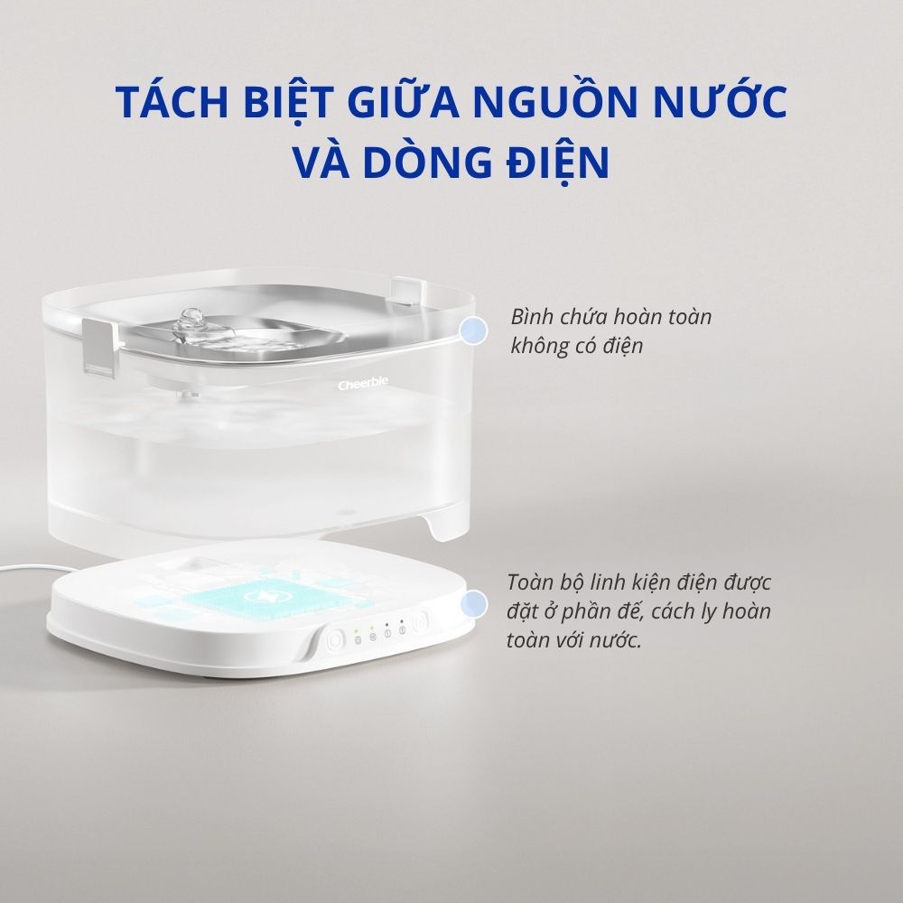 Cheerble D1 Pro được thiết kế với tiêu chí an toàn tuyệt đối và chất lượng nước vượt trội, mang đến trải nghiệm sử dụng tiện lợi và yên tâm cho người nuôi thú cưng. Sản phẩm nổi bật nhờ ba cơ chế kết hợp thông minh giúp duy trì nguồn nước sạch và đảm bảo an toàn khi sử dụng: