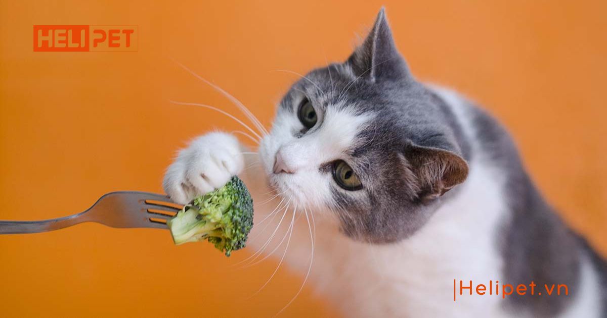 Cho mèo con một ít bông cải để bổ sung chất xơ