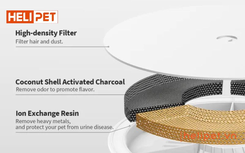 Sử dụng hệ thống lọc 3 lớp, đảm bảo nguồn nước sạch và mát lành cho thú cưng, khuyến khích chúng uống nước thường xuyên hơn.