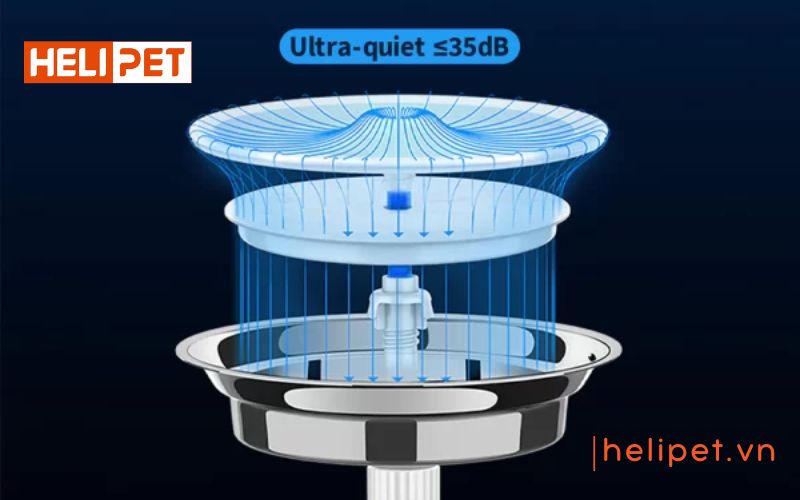 Độ ồn 35dB tựa như tiếng mưa rơi, không gây phiền nhiễu cho thú cưng.