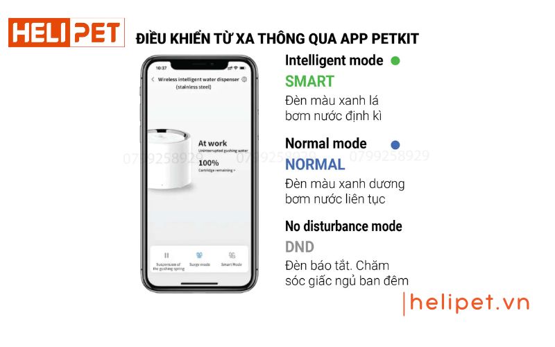Bạn có thể điều khiển máy lọc nước từ xa bằng app PETKIT trên ứng dụng di động. Ngoài ra, bạn còn có thể thay đổi chế độ hoạt động, theo dõi tình trạng và nhận thông báo về tình trạng của máy nhanh chóng.