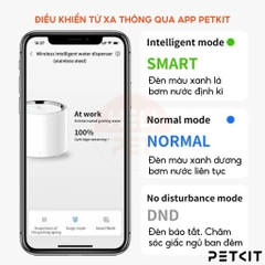 Bạn có thể điều khiển từ xa, giám sát lượng nước và điều kiện bộ lọc thông qua app PETKIT trên điện thoại thông minh: