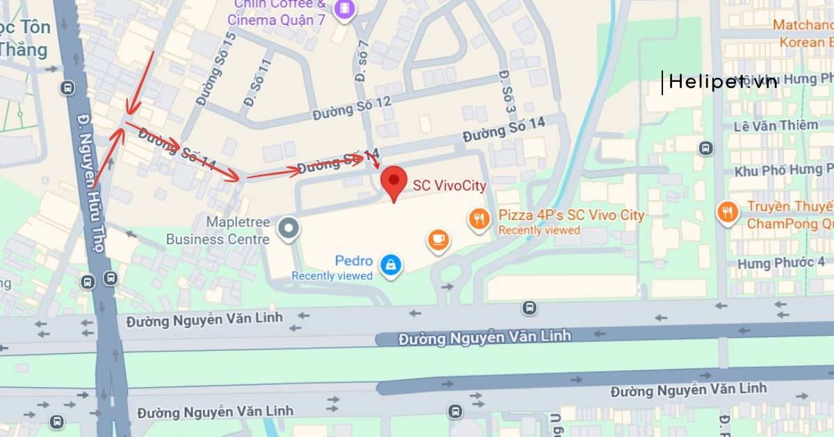 Nếu bắt đầu di chuyển từ Quận 1, bạn có thể đi theo hướng cầu Ông Lãnh, sau đó rẽ phải sang đường Hoàng Diệu và tiếp tục rẽ trái đi vào đường Khánh Hội. Từ đây, bạn tiếp tục đi thẳng qua cầu Kênh Tẻ để vào đường Nguyễn Hữu Thọ và tiếp tục chạy thẳng, sau đó rẻ trái vào đường số 3. Từ đường số 3 đi thẳng đến cuối đường, sau đó rẽ trái qua Lê Văn Lương rồi rẽ trái qua đường số 14. Đến đây, đi thẳng đường số 14 bạn sẽ bắt gặp trung tâm thương mại và hầm gửi xe SC Vivo Quận 7 ở phía tay phải.