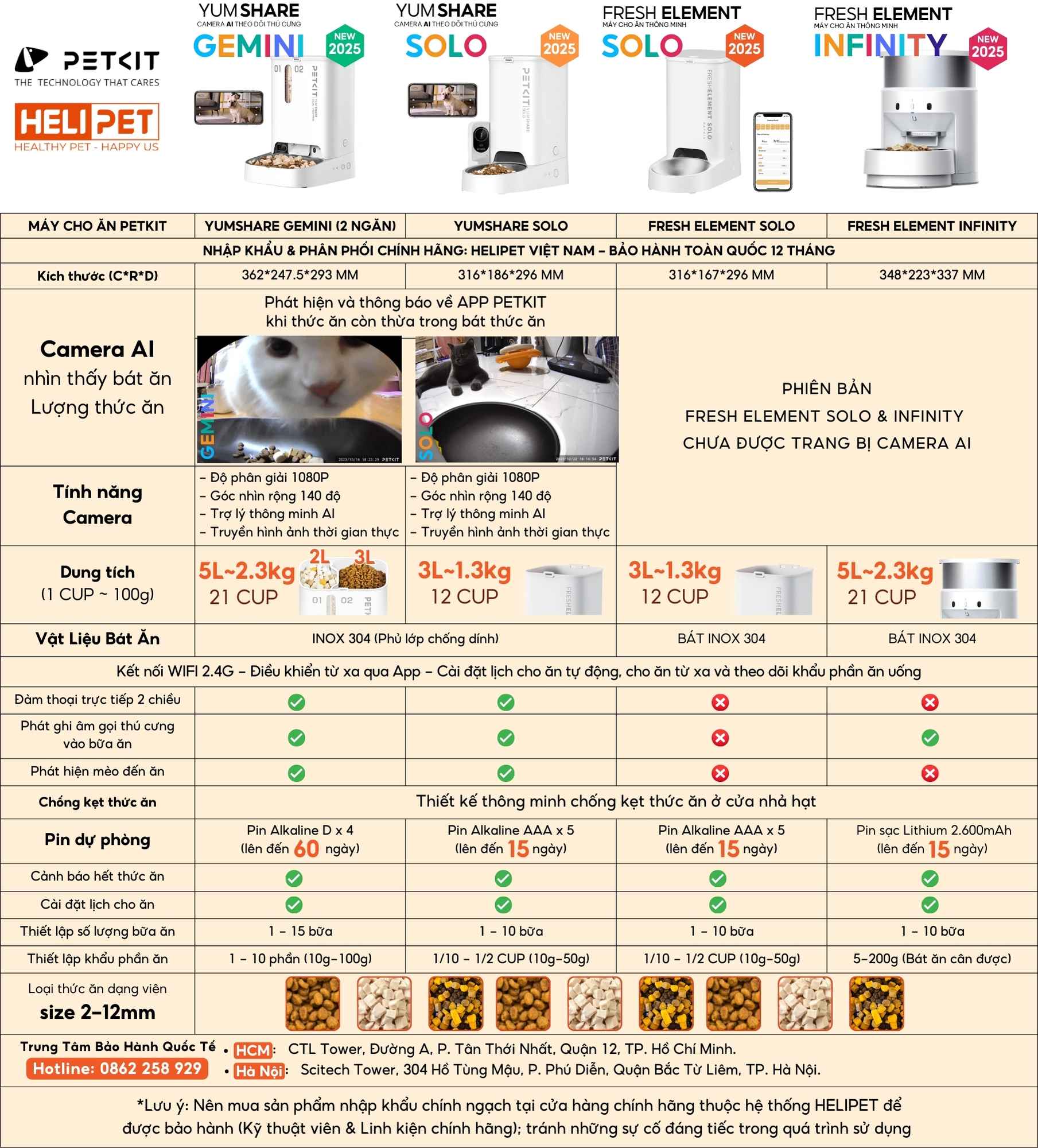 3. Bảng so sánh 4 máy cho ăn tự động PETKIT